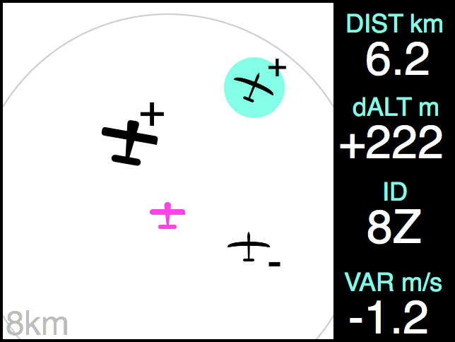 Die AIR Traffic Display Reihe ist das neu durchdachten Anzeigesystem für Verkehrsdaten. AIR Traffic Displays bieten robuste, auch in hellem Licht perfekt ablesbare Hardware und viele fortschrittliche Funktionen, die Piloten bei der Kollisionsvermeidung unterstützen. Die Displays sind mit vielen Kollisionswarnsystemen kompatibel, z.B. mit AIR Traffic, TRX-Geräten, FLARM® oder PowerFLARM®. Das neue AIR Traffic Display bietet noch mehr Verkehrsübersicht, einfachere Bedienung und bessere Ablesbarkeit. Es kann neben FLARM® auch ADS-B und Transponderverkehr darstellen.