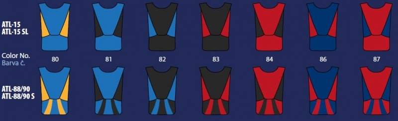 Rot, blau/gelb, blau/schwarz, schwarz/blau, schwarz/rot, rot/schwarz, dunkelblau/rot, rot/dunkelblau