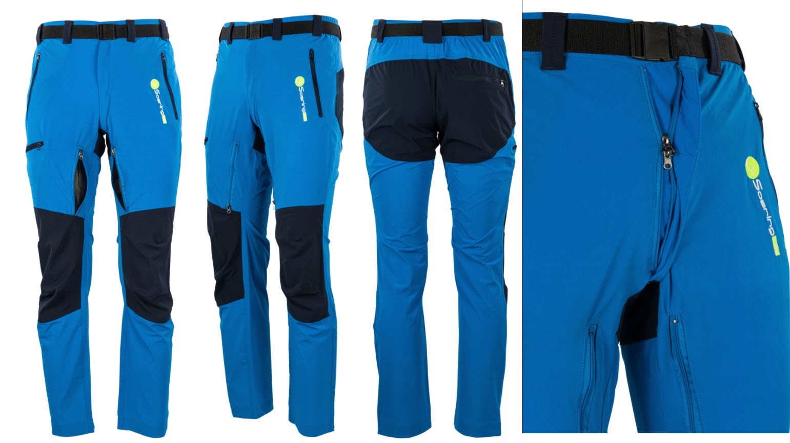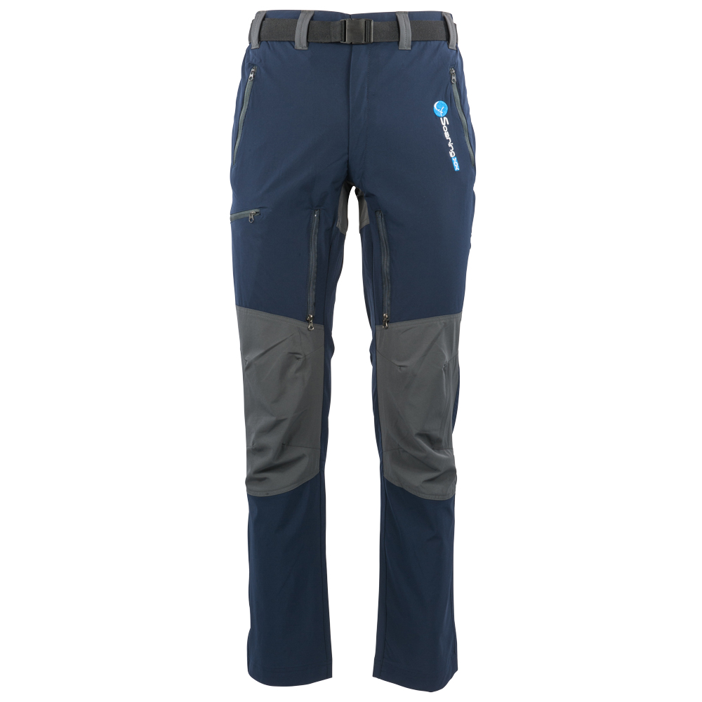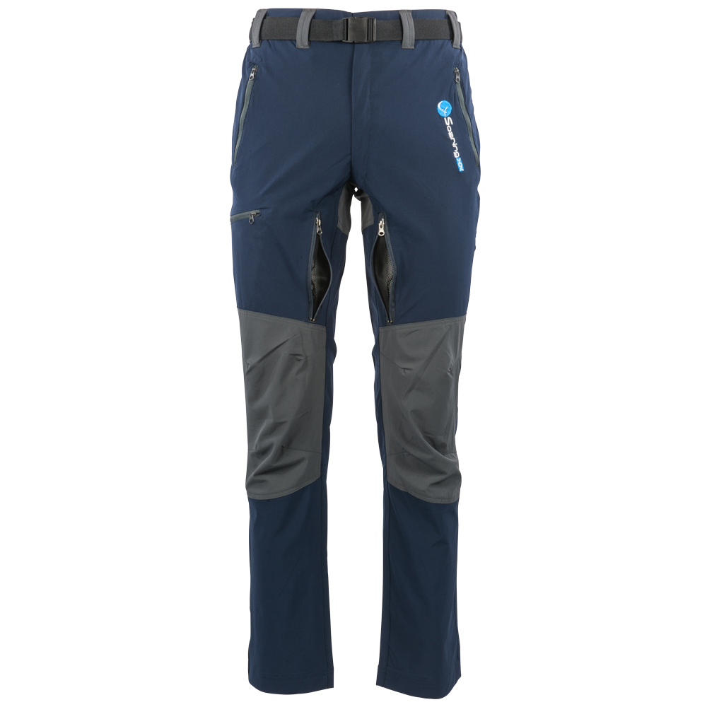 2 seitliche Taschen, 1 Gesäßtasche, 2 Lüftungstaschen am Bein,