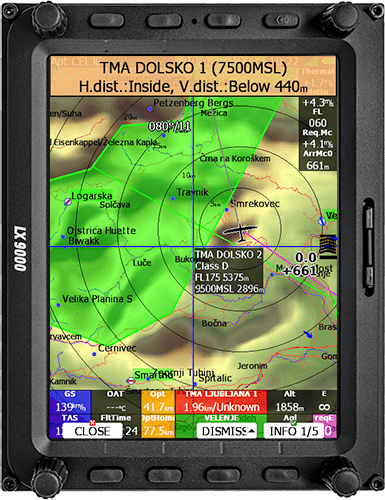 ADS-B und PCAS Objekte können ebenfalls angezeigt werden, wenn kompatible, externe Geräte angeschlossen sind.