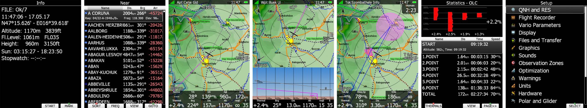 Sehr einfach Auswahl von Wegpunkten mit einer intuitiven Benutzeroberfläche. Erstelle eine Aufgabe auf dem Gerät oder in SeeYou oder im Simulator auf dem Laptop oder Desktop PC und lade sie einfach über SD, USB oder WiFi.