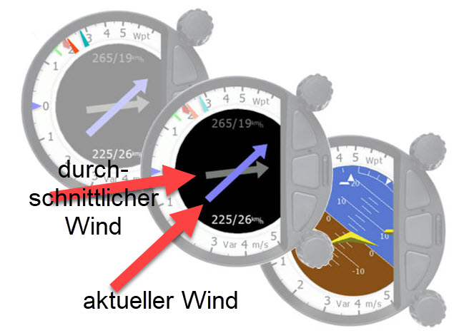 Endanfluganzeige, MC-Einstellung, Ballast-Einstellung, Mücken-Einstellung, Auswahl der Polare