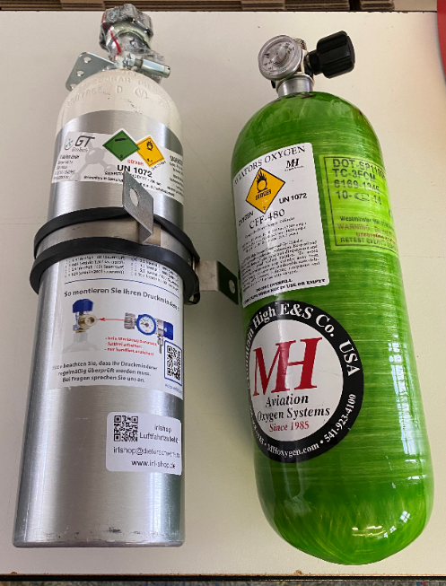 Alu-Sauerstoffflasche 1,8 l Höhenatemsauerstoff, leicht, geprüft, gut! Idealer Ersatz auch für die in D nicht mehr prüfbaren Mountain High Flaschen.