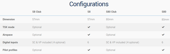 S8/S80 Club Serie, die günstige Einstiegsvariante, Variometer/Sollfahrtsystem, Navigation, GPS-Eingang, PDA/PNA Ausgang, Optional Horizontfunktion