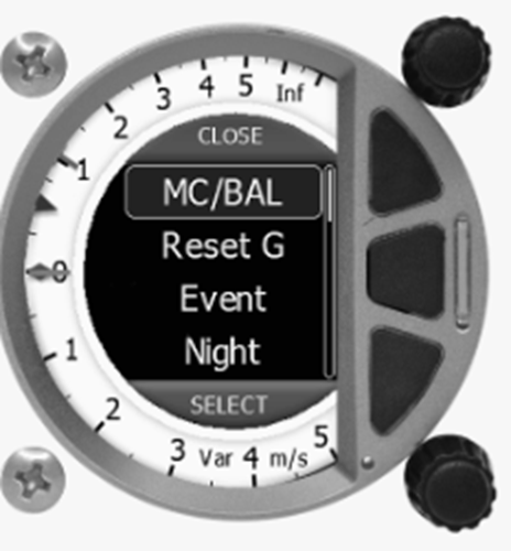 Endanfluganzeige, MC-Einstellung, Ballast-Einstellung, Mücken-Einstellung, Auswahl der Polare